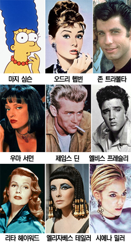 10위권 안에 든 최고의 머리모양으로는 영화 ‘그리스’(Grease)의 존 트라볼타(John Travolta)와 ‘펄프픽션’(Pulp Fiction)의 우마 서먼(Uma Thurman)이 선보였던 복고풍의 검은색 헤어스타일.