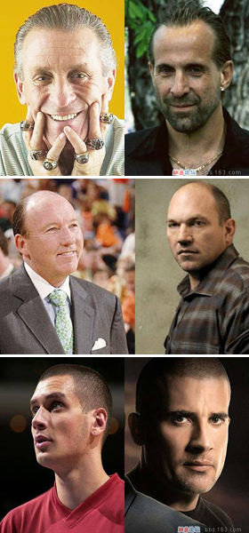 먼저 첫번째 사진(사진 맨 위부터)은 마이애미 히트(Miami Heat) 농구팀 감독 팻 라일리 (Pat Riley)와 프리즌 브레이크 시즌1에 출연한 피터 스토메어(Peter Stormare)와의 비교 사진이다.