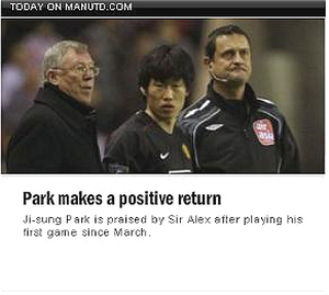 27일 현재 맨유 홈페이지도 ‘박지성의 성공적인 복귀’(Park makes a positive return)라는 기사를 메인 페이지에 배치하며 그의 복귀전에 대한 높은 관심을 나타내고 있다.