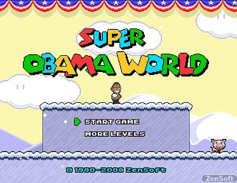 빨간 모자를 쓴 마리오 대신 하얀 이를 드러내며 활짝 웃고 있는 오바마의 캐릭터가 등장하는 이 게임은 오바마의 오랜 팬이 직접 개발한 것으로 알려졌다.
