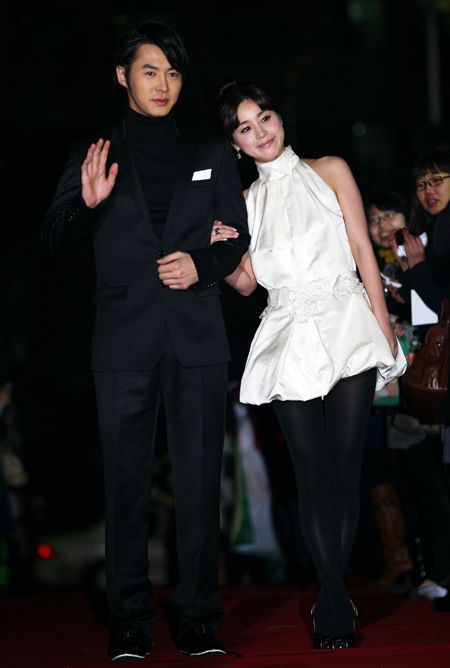 이날 전진과 서영희가 방송연예대상 시상식 볼거리 중 하나인 레드카펫 행사에 참석해 자리를 빛냈다.