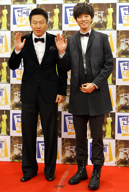 김수로 ㆍ이천희가 30일 오후 서울 등촌동 SBS 공개홀에서 진행된 ‘2008 SBS연예대상’에 참석해 포토월에서 멋진 포즈를 취하고 있다.