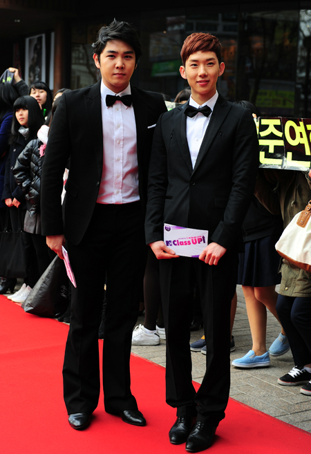 강인, 조권과 SS501의 멤버 김형준, 김규종, 허영생이 레드카펫 행사를 가지고 있다.
