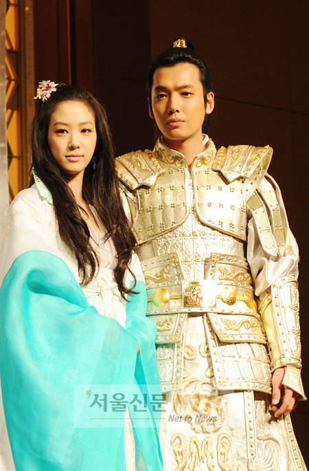 2일 오후 서울 소공동 롯데호텔에서 열린 SBS대하사극 ‘자명고’ 제작발표회에서 배우 정려원, 정경호(사진 왼쪽부터)가 포토타임을 갖고 있다.