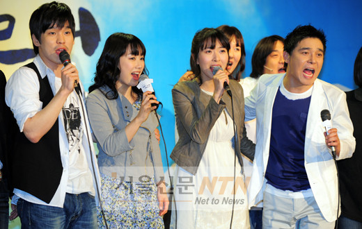 황광호, 곽선영, 조선명, 임창정이 15일 오후 서울 종로구 가나아트선테에서 열린 뮤지컬 ‘빨래’프레스 콜에서 멋진 연기를 보여주고 있다.
