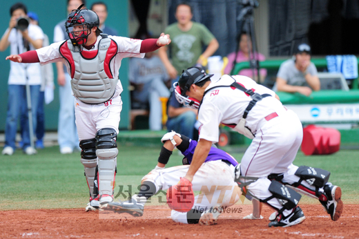 [NOW포토] 김창렬, 그라운드 홈런 치고 홈에서 ‘세이프’