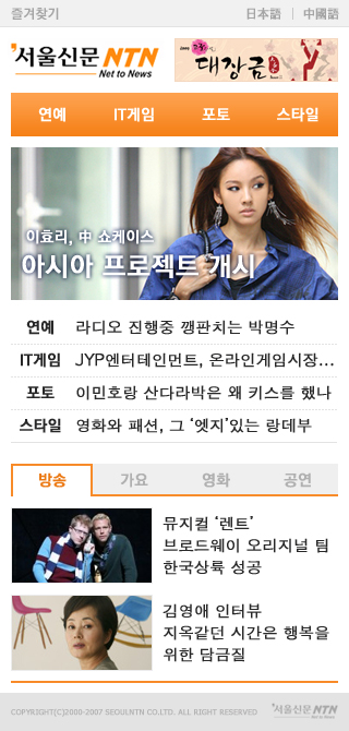서울신문NTN은 지난 1일부터 ‘모바일 서울신문NTN 사이트’(m.seoulntn.com)를 새롭게 구축하고 모바일 웹 엔터테인먼트 뉴스 서비스를 언론사 최초로 실시했다.