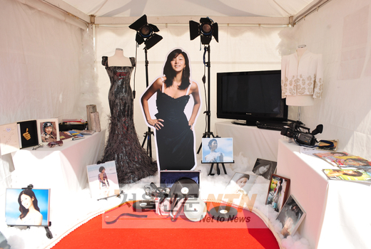 9일 오전 부산 해운대에서 열리고 있는 ‘제14회 부산국제영화제’ 파빌리온 야외광장 부스에서 故 장진영의 의상과 소품 등을 전시해 영화제를 찾은 일반인들에게 공개됐다.