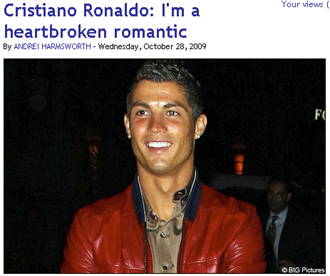 염문설이 끊이지 않는 축구스타 크리스티아누 호날두(24·레알 마드리드)가 스스로를 ‘로맨티스트’라고 표현했다.