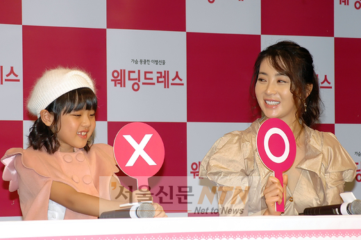 배우 김향기와 송윤아가 8일 오전 11시 서울 강남구 신사동 압구정 CGV에서 열린 영화 ‘웨딩드레스’(감독 권형진, 제작 로드픽쳐스) 제작발표회에 참석해 OX퀴즈를 하고 있다.