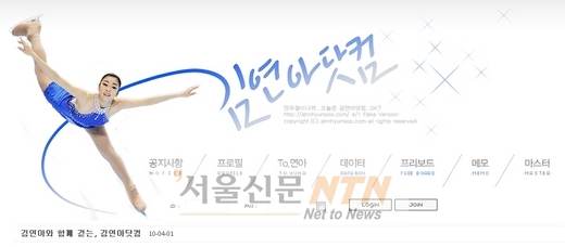 김연아 선수의 사진 두장과 함께 사진 아래에는 ‘이곳은 피겨 여왕 김연아 선수를 응원하는 김연아 닷컴, 연닷입니다.’라고 적혀 있다.