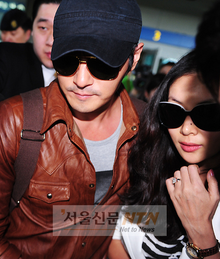 [서울신문NTN 한윤종 기자] ‘한국의 브란젤리나’ 장동건 고소영 부부가 8일 오전 인천국제공항에 5박6일동안의 신혼여행을 마치고 귀국하고 있다.