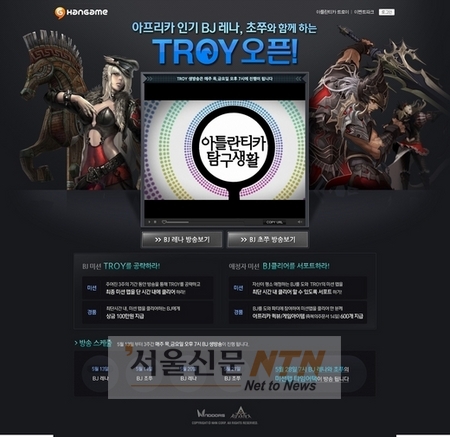 NHN 한게임은 자사가 서비스하고 엔도어즈가 개발한 MMORPG <아틀란티카> ‘트로이’의 아프리카 TV 방송을 13일부터 시작한다고 밝혔다.