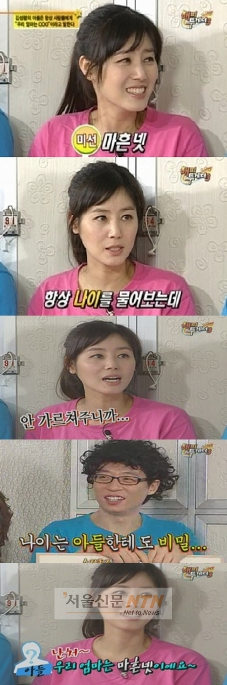 또 아들에게도 나이를 밝히지 않을 정도로 실제 나이를 철저히 숨긴다고 고백한 김성령은 “아들에게 나이를 알려줬더니 그 뒤로는 ‘우리 엄마는 44살이다’라고 얘기하고 다닌다.”고 말했다.