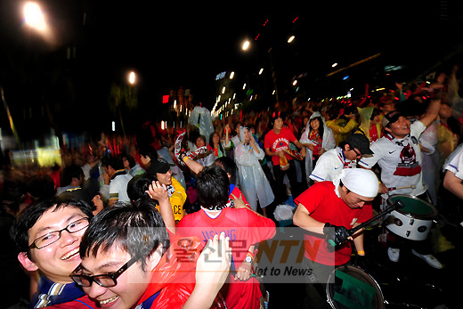 [서울신문NTN 현성준 기자] 12일 오후 서울 삼성동 영동대로에서 시민들이 2010 남아공월드컵 한국과 그리스전 거리응원을 펼치고 있다.