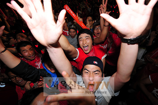 [서울신문NTN 현성준 기자] 12일 오후 서울 삼성동 영동대로에서 시민들이 2010 남아공월드컵 한국과 그리스전 거리응원에서 승리를 만끽하고 있다.