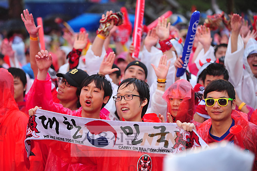 [서울신문NTN 현성준 기자] 12일 오후 서울 삼성동 영동대로에서 시민들이 2010 남아공월드컵 한국과 그리스전 거리응원을 펼치고 있다.