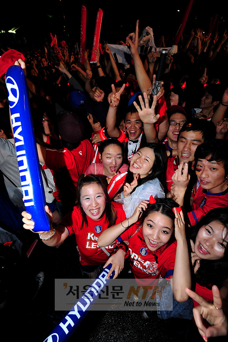 [서울신문NTN 현성준 기자] 12일 오후 서울 삼성동 영동대로에서 시민들이 2010 남아공월드컵 한국과 그리스전 거리응원에서 승리를 만끽하고 있다.
