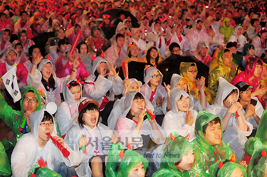 [서울신문NTN 이대선 기자] 12일 오후 서울 한강시민공원 반포지구에서 열린 2010 남아공월드컵 한국과 그리스전 거리응원에서 시민들이 한국 축구국가대표팀을 응원하고 있다.