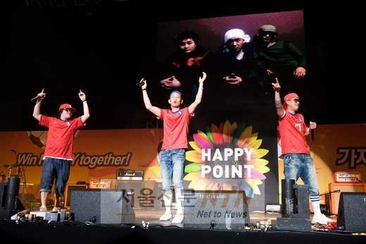 [서울신문NTN 이규하 기자] 한국 대표팀의 첫 경기가 열린 12일 SPC그룹 주최로 장충 체육관에서 열린 ‘Win Happy Together 가자, 16강으로!’ 응원전에서 DJ.DOC가 열정적인 무대를 선보이고 있다.