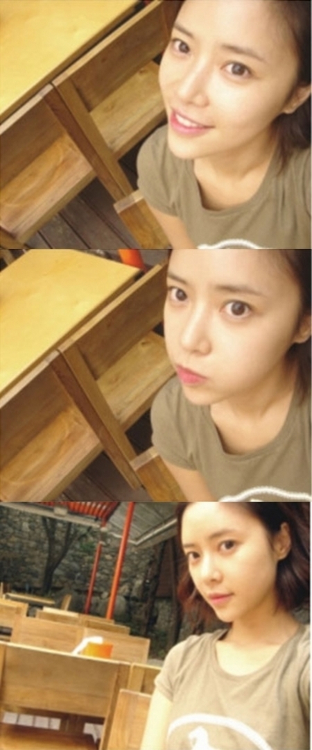 황정음은 최근 자신의 미니홈피에 화장기 없는 맨 얼굴의 사진을 공개해 팬들의 관심을 집중시켰다. 사진 속 그는 평범한 티셔츠 차림에 잡티 없는 깨끗한 피부를 자랑하며 미소를 짓고 있다.