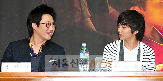 [서울신문NTN 현성준 기자] 24일 오후 2시 서울 여의도 KBS신관 5층 국제회의실에서 열린 KBS 1TV ‘사랑의 리퀘스트’의 특집 프로젝트 ‘2010 희망로드 대장정’ 제작발표회에 참석한 배우 박신양과 유승호가 대화를 나누고 있다.