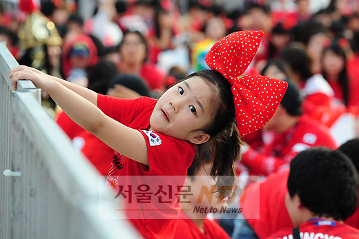 [서울신문NTN 이대선 기자] 대한민국과 우르과이 축구 국가대표팀의 16강 경기를 앞둔 26일 오후 서울 태평로 서울광장 거리응원전에서 한 어린 시민이 경기를 기다리고 있다.