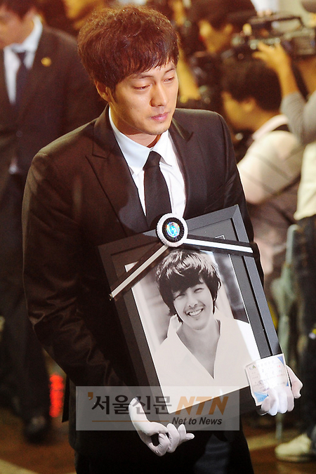 [서울신문NTN 이대선 기자] 2일 오전 경기도 성남시 갈현동 성남영생관리사업소에서 소지섭이 故 박용하의 영정을 들고 이동하고 있다.