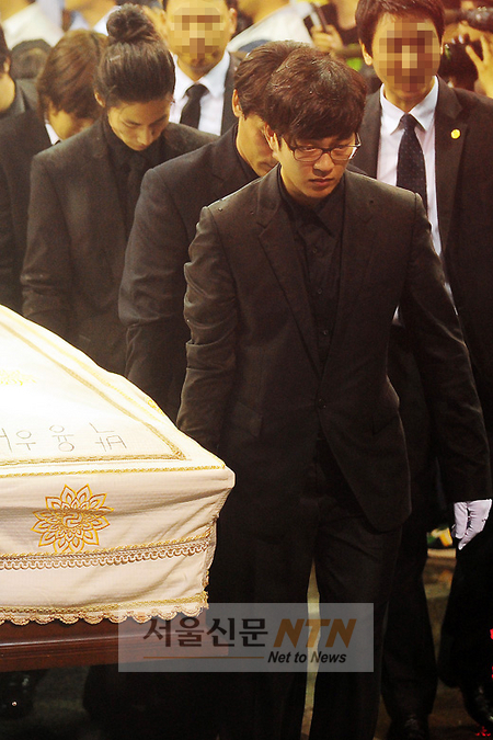 [서울신문NTN 이대선 기자] 2일 오전 경기도 성남시 갈현동 성남영생관리사업소에서 배우 박광현이 故 박용하의 시신을 운구하고 있다.