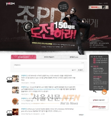 [서울신문NTN 이규하 기자] 다음커뮤니케이션(이하 다음)은 마이크로블로그 ‘요즘’을 통해 온라인 프리스타일 랩배틀(자유로운 랩을 통해 승부를 정하는 랩 대결)을 진행한다고 9일 밝혔다.