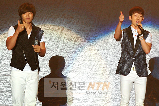[서울신문NTN 현성준 기자] 그룹 2AM 정진운과 조권이 31일 오후 7시 서울 송파구 올림픽공원 체조경기장에서 열린 2PM의 첫 번째 단독 콘서트 ‘Don’t Stop Can’t Stop’에서 축하 메세지를 전달하고 있다,