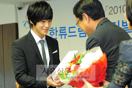 [서울신문NTN 현성준 기자] 5일 오전 11시 서울 중구 한국관광공사에서 진행된 ‘한류드림페스티벌 홍보대사 위촉식 및 경상북도 홍보대사 위촉식’에서 한류드림페스티벌 홍보대사 김범이 노영우 본부장에게 위촉장을 전달 받고 있다.