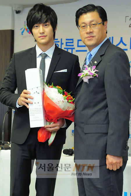 [서울신문NTN 현성준 기자] 5일 오전 11시 서울 중구 한국관광공사에서 진행된 ‘한류드림페스티벌 홍보대사 위촉식 및 경상북도 홍보대사 위촉식’에서 한류드림페스티벌 홍보대사 김범과 방문위 노영우 본부장이 포즈를 취하고 있다.