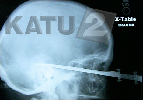 당시 응급실에서 그를 치료한 의사는 “박힌 칼을 빼냈는데 피만 약간 흘렸을 뿐 큰 부상이 없었다.”며 “눈동자조차 다치지 않았다.”고 말했다.