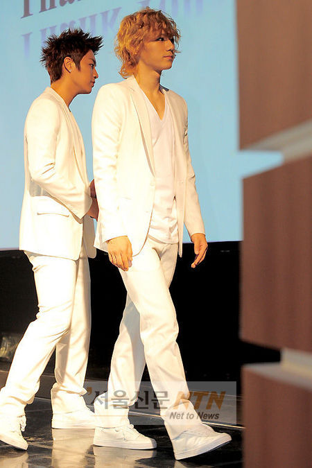 [서울신문NTN 현성준 기자] 10일 오후 5시 서울 삼성동 섬유센터에서 열린 ‘2010 썸머 큐브 스타 파티’에서 골든디스크상을 받은 비스트 윤두준과 장현승이 무대를 빠져나가고 있다.
