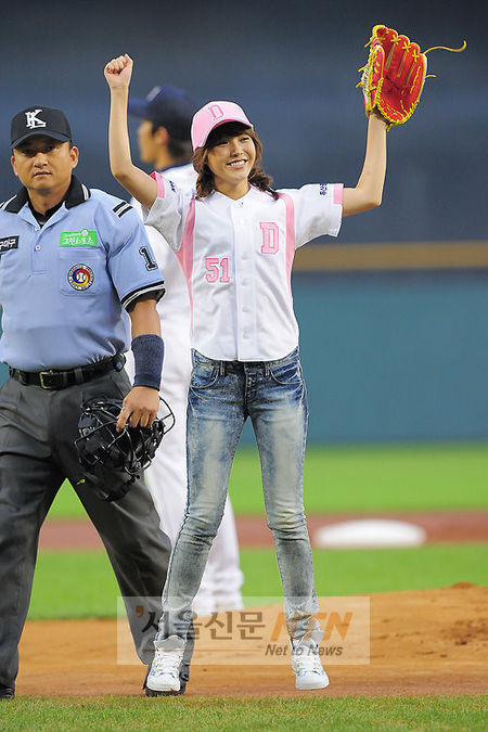 [서울신문NTN 현성준 기자] 가수 아이유가 12일 오후 잠실야구장에서 열리는 ‘2010 CJ 마구마구 프로야구’ 두산 베어스와 넥센 히어로즈의 경기에서 멋진시구를 마치고 기뻐하고 있다.