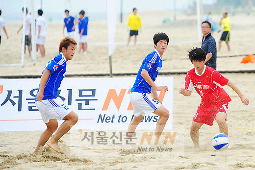 [서울신문NTN 이대선 기자] 강릉시청과 서울세종대가 14일 오전 강원 동해 망상해수욕장 특별경기장에서 열린 ‘2010 동트는 동해 KFA 전국비치사커대회’에서 경기를 펼치고 있다.
