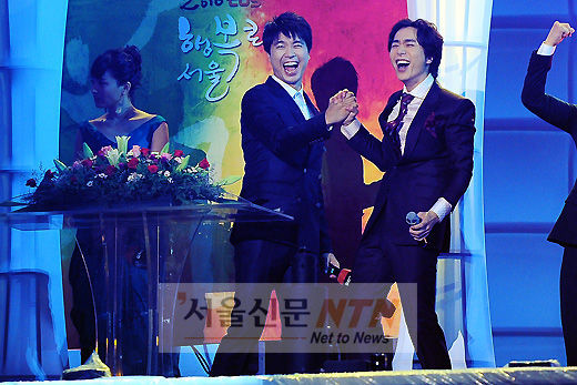 [서울신문NTN 이대선 기자] 가수 조성모, 방송인 박수홍이 28일 오후 서울 상암동 서울월드컵경기장에서 열린 ‘2010 tbs 행복콘서트 서울’에서 멋진 무대를 선보이고 있다.