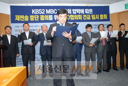 [서울신문NTN 김수연 기자] SO협의회는 13일 서울 연세빌딩에서 ‘KBS2, MBC, SBS의 동시재전송 중단 압박에 대한 임시 긴급총회’를 열고 ‘동시재전송 중단 강요에 대한 결의문’을 채택했다.