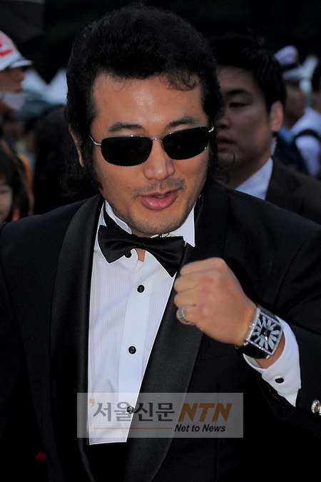 [서울신문NTN 현성준 기자] 2일 오후 충남 계룡시 계룡대 비상활주로 제1정문에서 열린 ‘2010 계룡국제밀리터리영화제’ 개막식에 참석한 김보성이 레드카펫을 밟고 있다.