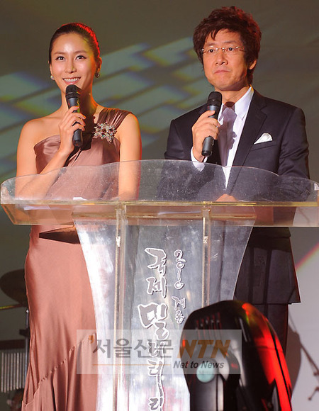 [서울신문NTN 현성준 기자] 2일 오후 충남 계룡시 계룡세계군문화축제 행사장내 주상영관에에서 열린 ‘2010 계룡국제밀리터리영화제’ 개막식에 참석한 정재환과 황인영이 사회를 보고 있다.