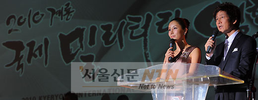 [서울신문NTN 현성준 기자] 2일 오후 충남 계룡시 계룡세계군문화축제 행사장내 주상영관에에서 열린 ‘2010 계룡국제밀리터리영화제’ 개막식에 참석한 정재환과 황인영이 사회를 보고 있다.