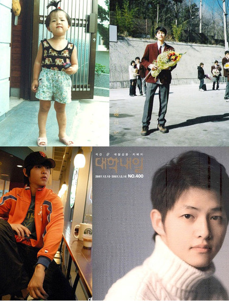 사진 속 송중기는 여자아인지, 남자아인지 쉽게 구분이 안될 만큼 깜찍하고 예쁜 모습이다. 최근 유행한 ‘사과머리’를 한 어린 시절 사진부터 앳된 모습의 중, 고등학교 시절, 대학교 재학 중 ‘대학내일’이라는 잡지의 표지모델로 나왔던 당시의 사진까지 송중기의 성장 과정을 한 눈에 볼 수 있다.