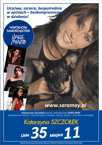 9일 영국 매체 오렌지뉴스는 “사라 메이로 가수 활동을 한 폴란드 여성 카타르지나 쉬츠웨크(Katarzyna Szczolek)가 이달 말 열리는 선거에 수도 바르샤바 지방단체를 대표하는 의원으로 출마한다.”고 전했다.