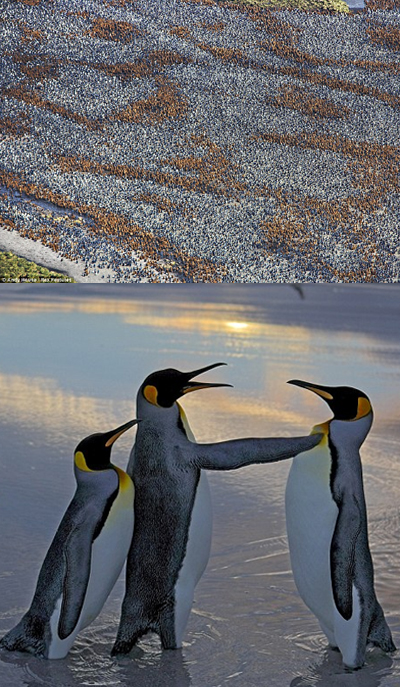 최근 한 해외매체에 새끼를 추위로부터 지키기 위해 거대한 무리를 형성하는 킹펭귄의 모습이 소개돼 화제가 되고 있다. 이 펭귄 무리 사진은 남대서양 사우스 조지아섬에서 찍힌 것으로 이 섬에만 약 200만 마리 정도의 펭귄들이 서식하는 것으로 알려져 있다 .