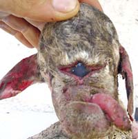 눈동자가 하나 박힌 양은 태어나자마자 숨이 끊어졌고, 눈동자 2개 양은 농장주인이 사살했다.