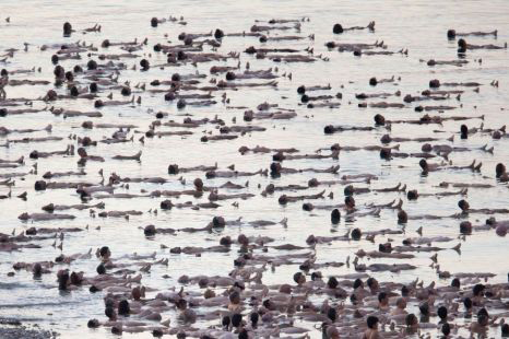 사해가 세계 7대 자연경관으로 선정되길 촉구하는 이번 퍼포먼스는 집단 누드 촬영으로 유명한 미국 사진작가 스펜서 튜닉이 담당했다.