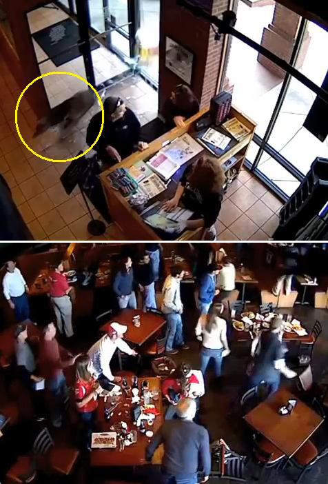 타코 식당의 카운터에서 두 손님이 자리를 확인 하려는 순간 갑자기 약 90kg 정도 되는 사슴 한마리가 정문 유리를 박살내고 들어 왔다. 식당 안에 있던 100여명의 손님들이 난입한 사슴을 피하느라 소동이 벌어졌다.