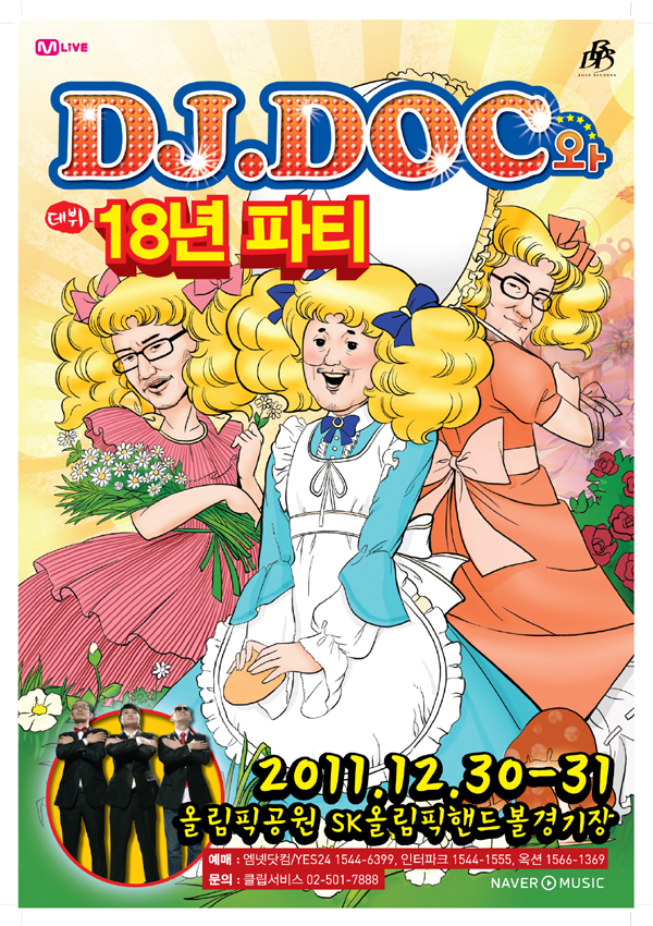 올해로 데뷔 18년을 맞아 더욱 화끈하고 따뜻한(?) 연말을 책임질 DJ.DOC의 ‘2011 DJ DOC와 18년 파티’는 오는 12월 30-31일 올림픽 공원 SK올림픽핸드볼경기장에서 열리며, 수원, 부천, 울산으로 이어질 예정이다.