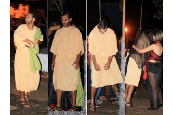 반과르디아 등 중남미 언론에 따르면 아찔한 상황은 남미 브라질의 이타라레라는 곳에서 성금요일이었던 지난 6일(현지시각) 발생했다. 예수의 십자가 고난을 그린 성극에서 가롯 유다 역을 맡은 티아고 클리멕이라는 이름의 남자가 연기 중 목숨을 잃을 뻔했다.